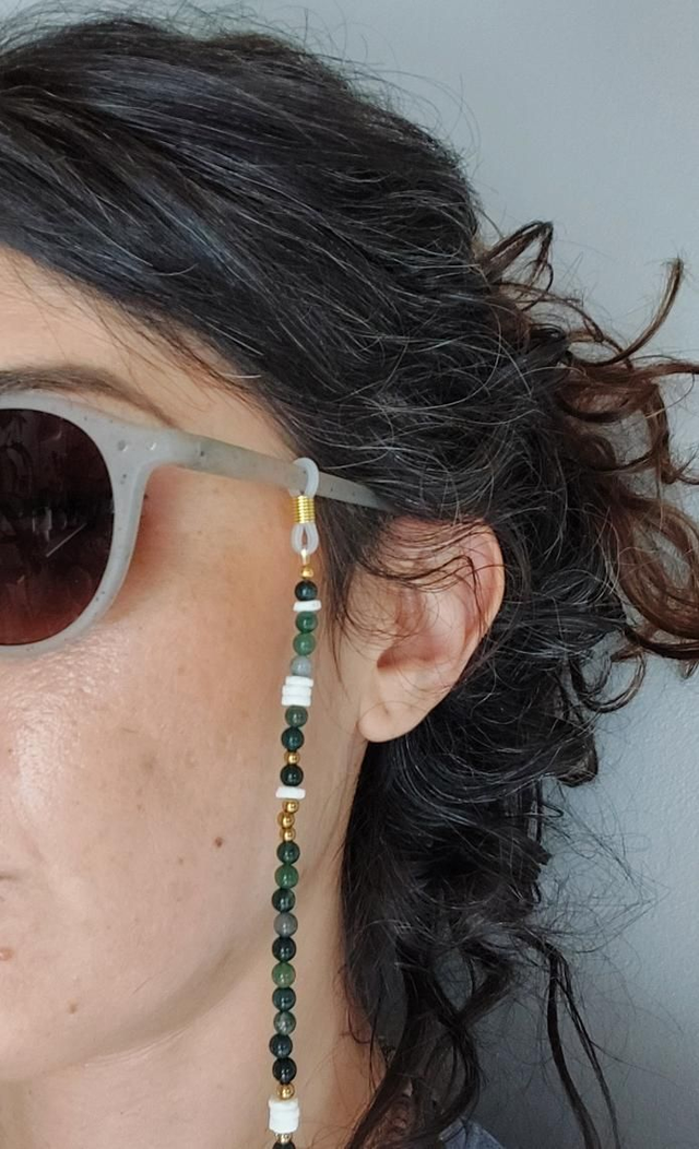 Perles 4mm agate mousse, rondelles en coquillage et interperles en hématite